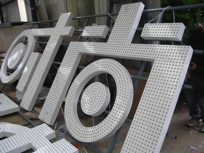 有時我們和客戶談價格時,說你這套外露發光字的價格真的很實惠,距離比較密,而且字筆畫粗,燈多成本高。外露打孔發光字都是由幾百,甚至上千個小孔組成的,那么不少有就會有疑問,請問沖孔發光字的孔距是多少,間距是多少,以及光源的型號,一個平方大概是安裝多少顆燈珠。